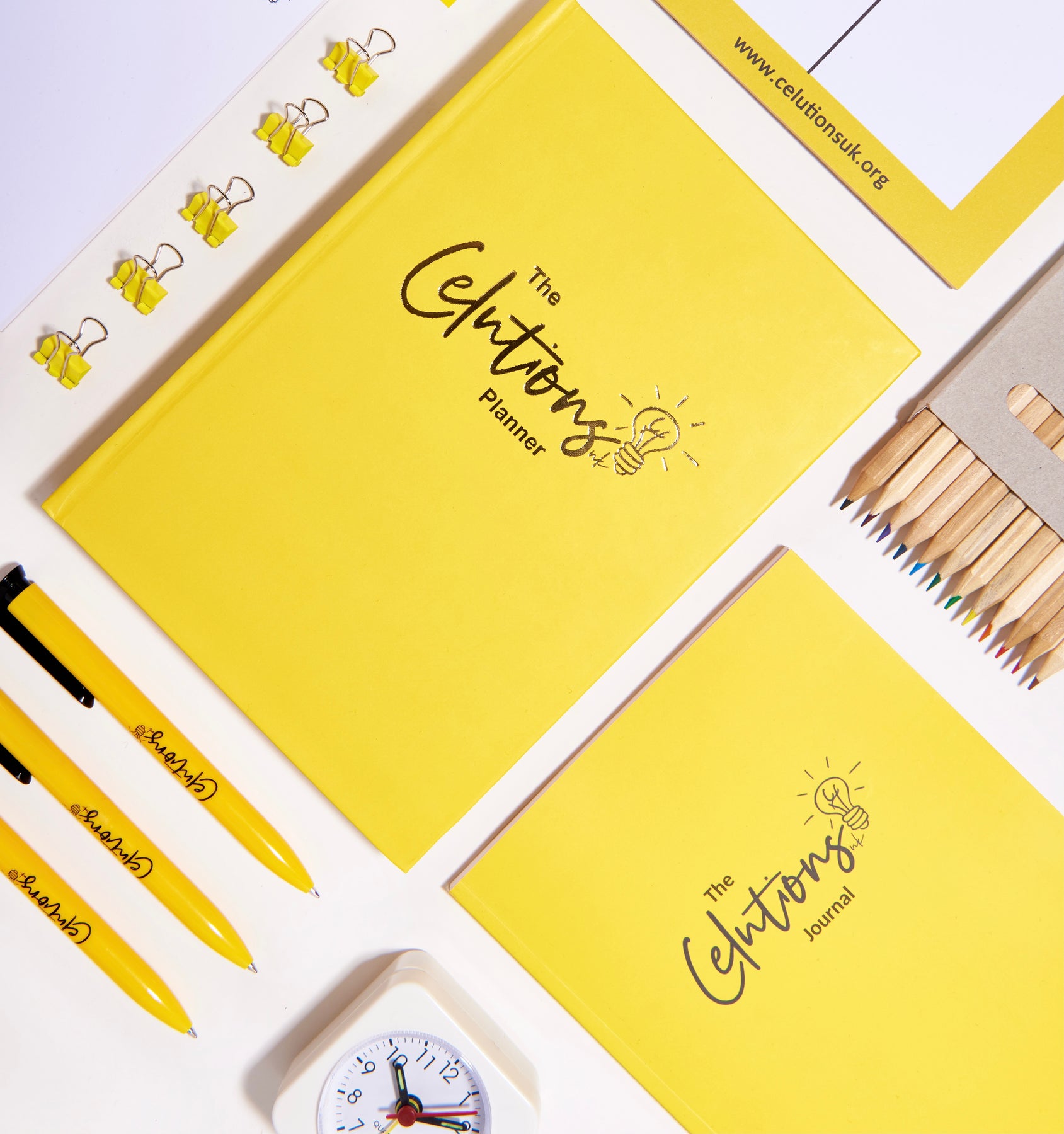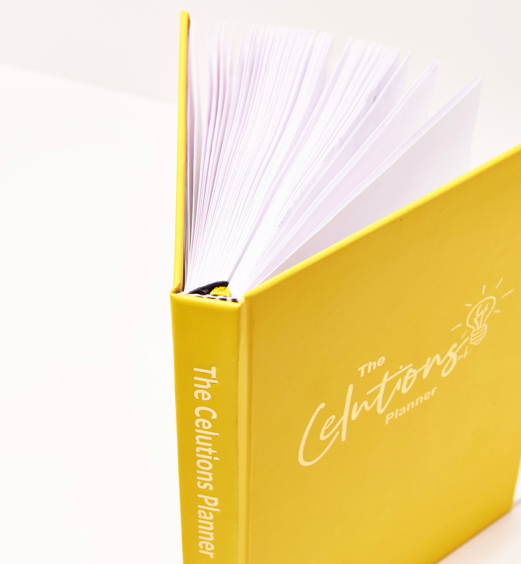 - Gold foiling “The Celutions Planner” with Celutions logo on spine